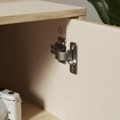 Keep your living or dining room neat and tidy with this sideboard. Perfect for magazines, books and electronic devices, its open shelves are also perfect for adding your own touch with decor pieces. With a timeless oak effect finish and sleek brushed gold effect handles, it’s great for adding some style to your room.