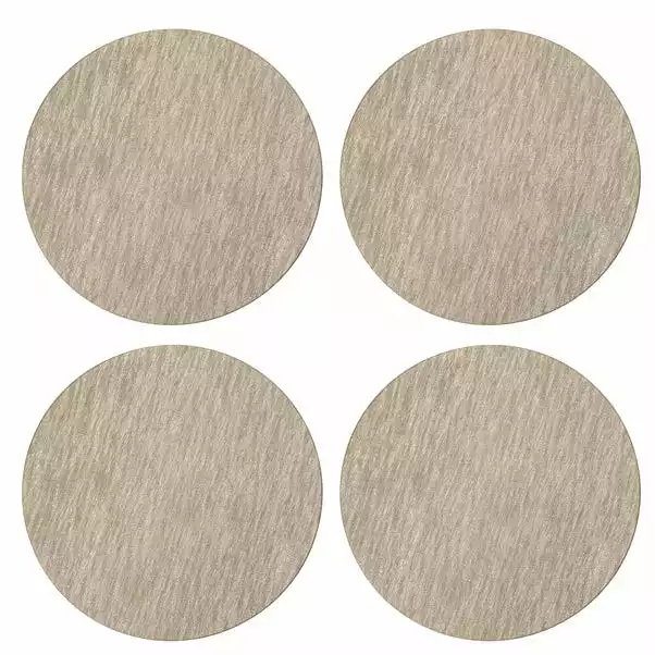 Crafted with a textured faux leather design with an easy wipe clean finish, these placemats come in a set of four and are coloured in a glamorous champagne gold colour. Matching coasters are available.