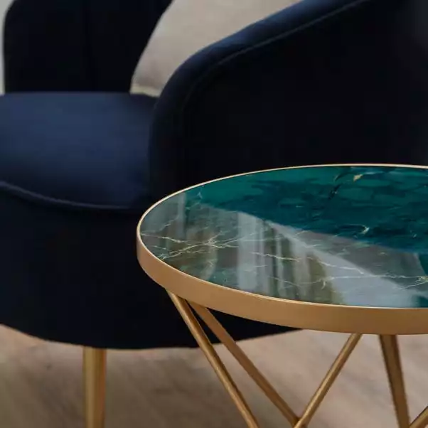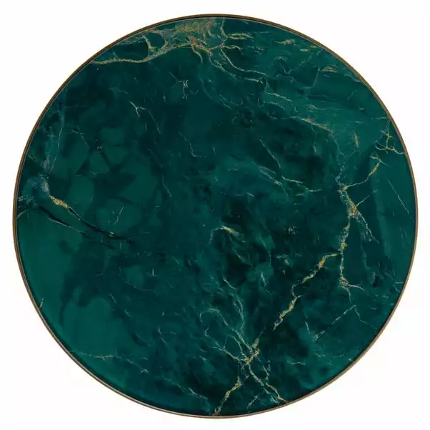 The contemporary and luxe design of the Zoey Marble Effect Side Table instantly adds an elegant feel to your home. Featuring a marble-effect green top made of tempered glass and finished with gold-effect hairpin metal legs, this compact yet practical side table is ideal for use in any room and is sure to be a new favourite in the home.