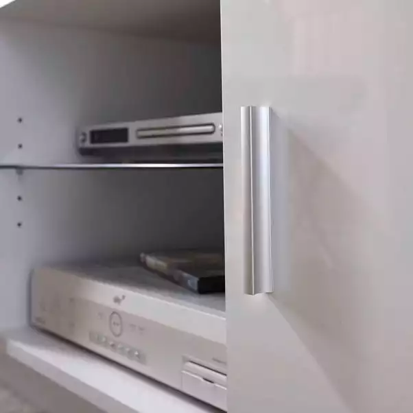 The Lima High Gloss TV Stand features two cupboards with shelves which are ideal for storing DVDs or console games. It also features an open shelf in the middle made from tempered glass that is perfect for holding your AV equipment.