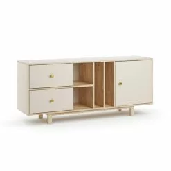 Add a touch of understated glamour to your living space with the retro-inspired Orleans Console Table. The simple mango-effect construction creates a warm, neutral palette that’s enhanced by delicate engraved metallic detail in a modern geometric design. The twin drawers are also accessorised with neat gold-coloured drawer pulls that perfectly complement the elegant hairpin legs. The spacious central cubbyhole is ideal for books, magazines and directories whilst the two large drawers provide plenty of practical storage space.