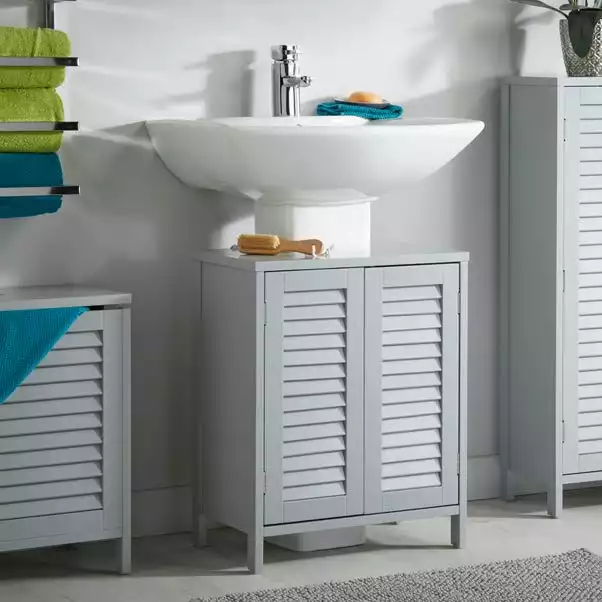 Featuring louvre door detailing, the Tuscany under basin unit has double door access with push to close doors and 2 shelves, where you can neatly store your bathroom essentials. Flat packed and easy to assemble.
