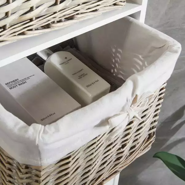 This white willow Tall Cabinet featuring willow baskets adds additional storage to any bathroom. With a white wooden finish this Tall Cabinet adds a fresh and stylish touch to any bathroom.